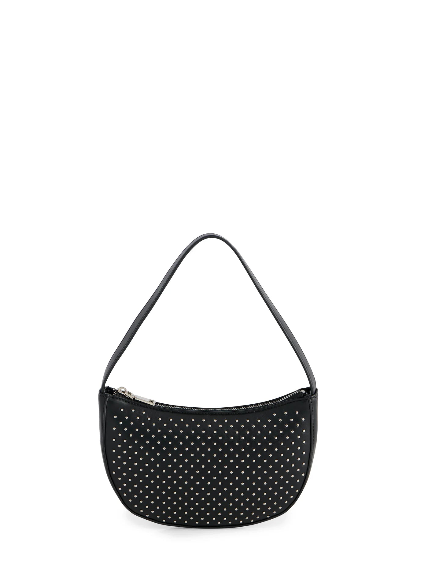 Add a little sparkle to your everyday look with the Roxy Shoulder Bag. This sleek faux leather shoulder bag features an arched silhouette covered in petite, polished studs for just the right amount of edge. With a top zip closure, inner zip pocket, and two slip pockets, it keeps your essentials organized and secure. Compact and chic, it’s perfect for nights out, brunch dates, or anytime you want your outfit to shine.