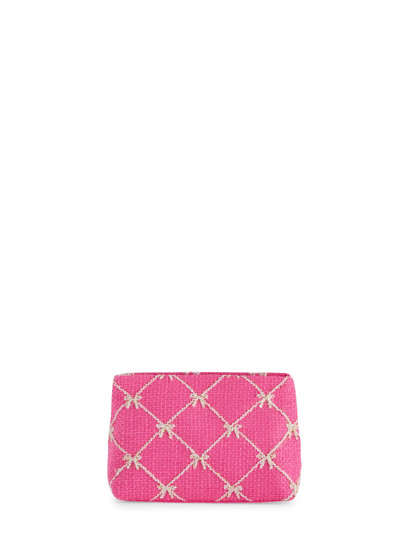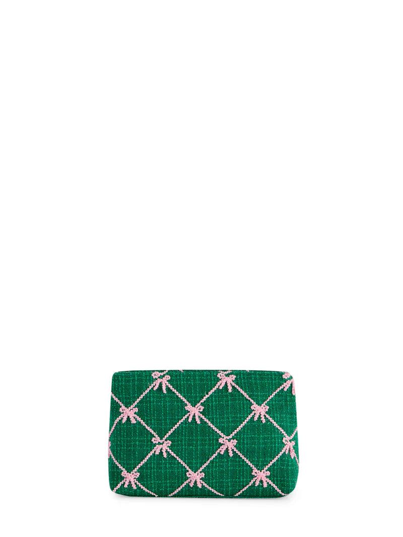 Sweet, sparkly, and ready to party — the Tinsel Bow Zip Pouch is your new favorite festive accessory. Featuring a textured body and an all-over stitched bow pattern, this pouch adds instant charm to your holiday look. With its roomy interior, inner slip pockets, and secure zip closure, it's perfect for stashing your essentials in style. Available in multiple colors, it’s a must-have for gifting or treating yourself.