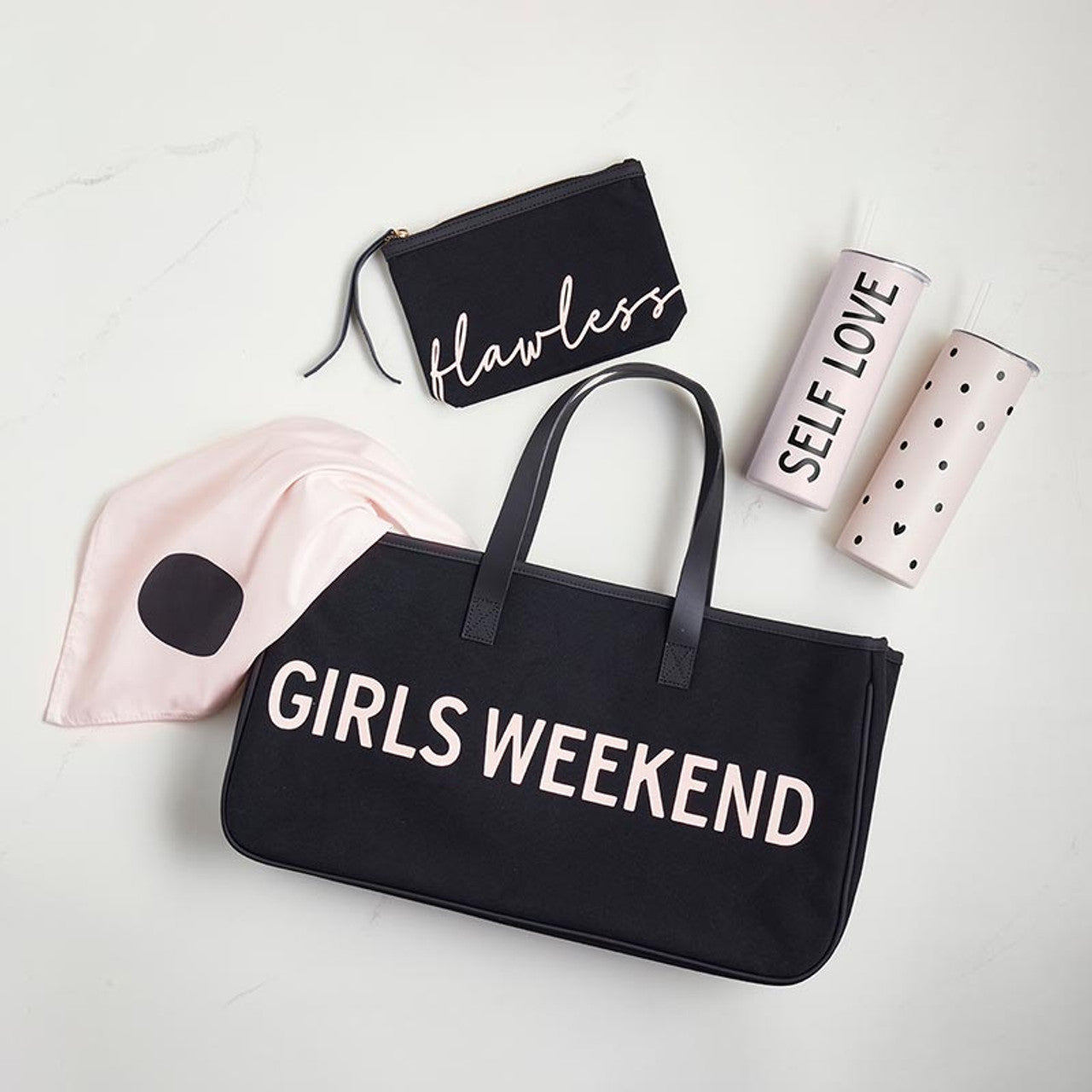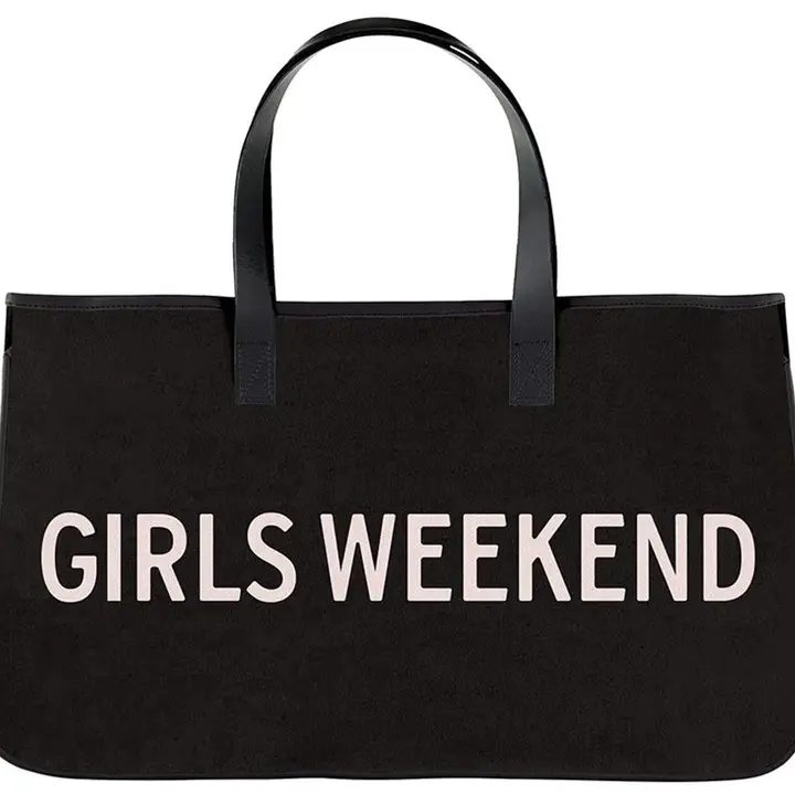 Give yourself a reason to plan a girls night or weekend trip with this tote! Genuine leather handles stitched to heavyweight canvas make for a clean, modern look! A convenient inside pocket allows for easy storage and a waterproof lining to protect against accidental spills!