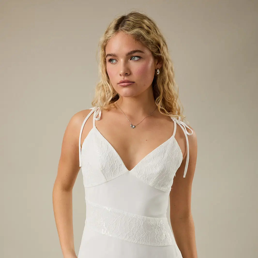 Delicate lace detailing meets modern versatility in this charming mini dress. Featuring adjustable elements that let you customize the fit to your body, this piece transitions effortlessly from casual outings to evening events. The intricate lace design adds an elegant touch while maintaining a flattering silhouette. Perfect for anyone seeking a dress that adapts to their style and comfort needs.