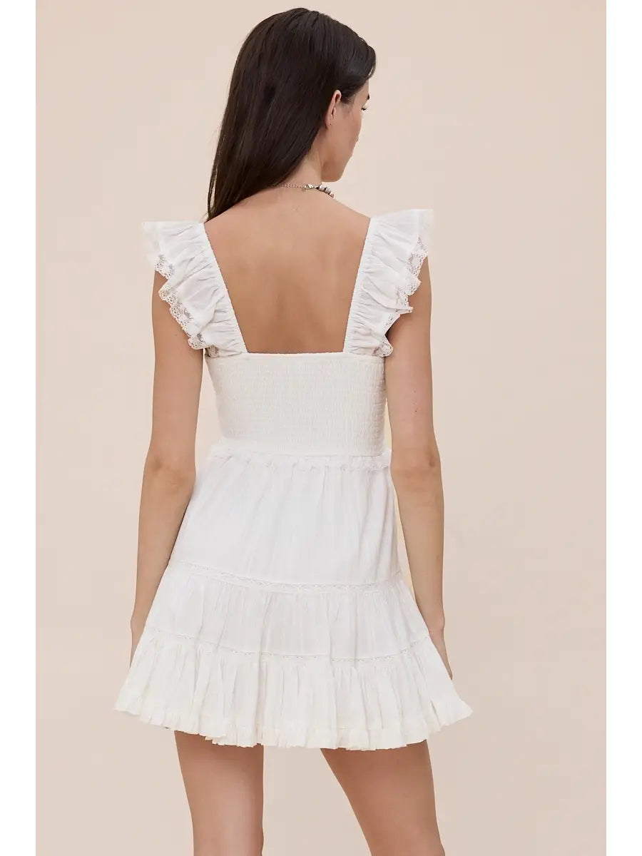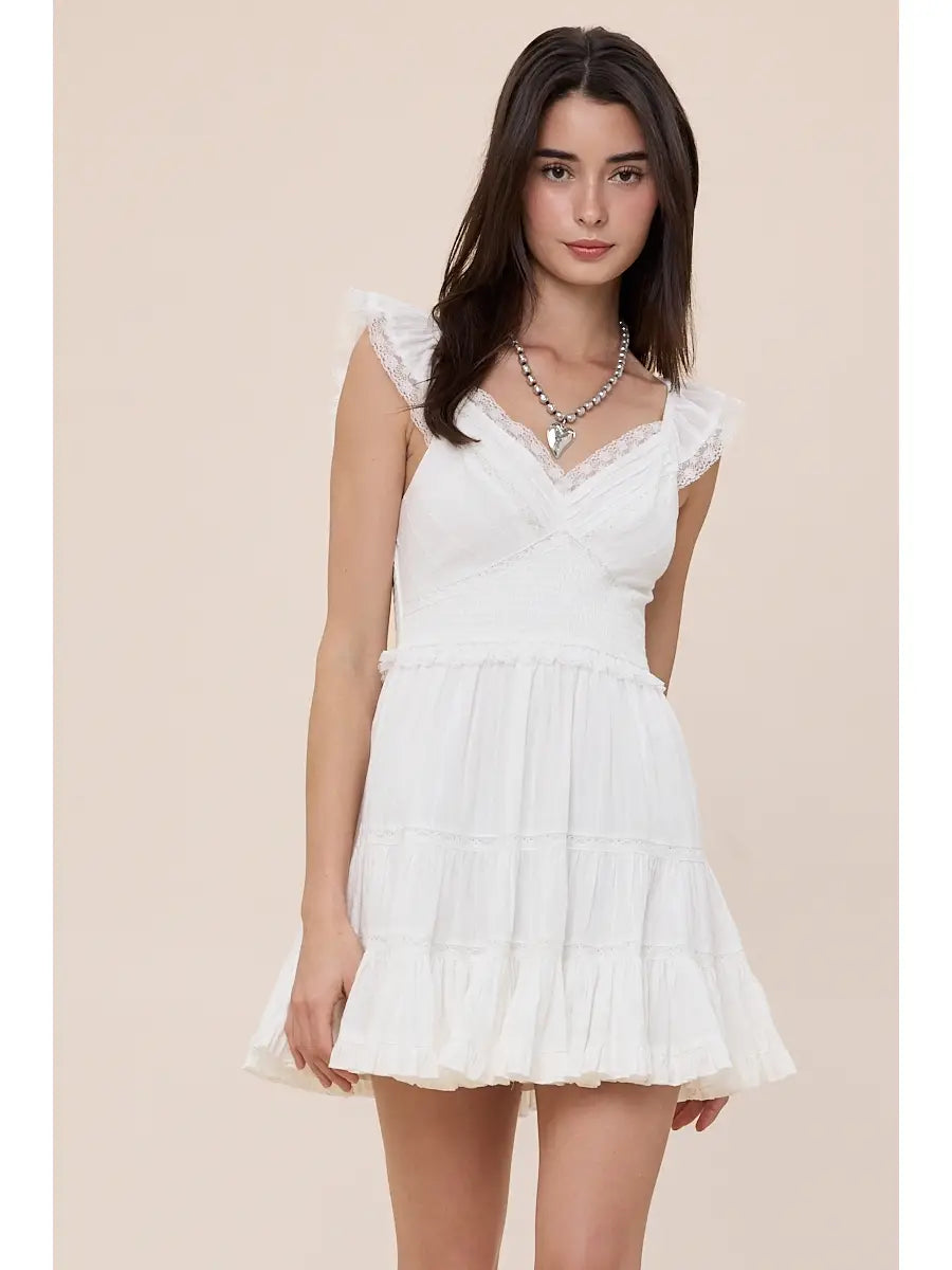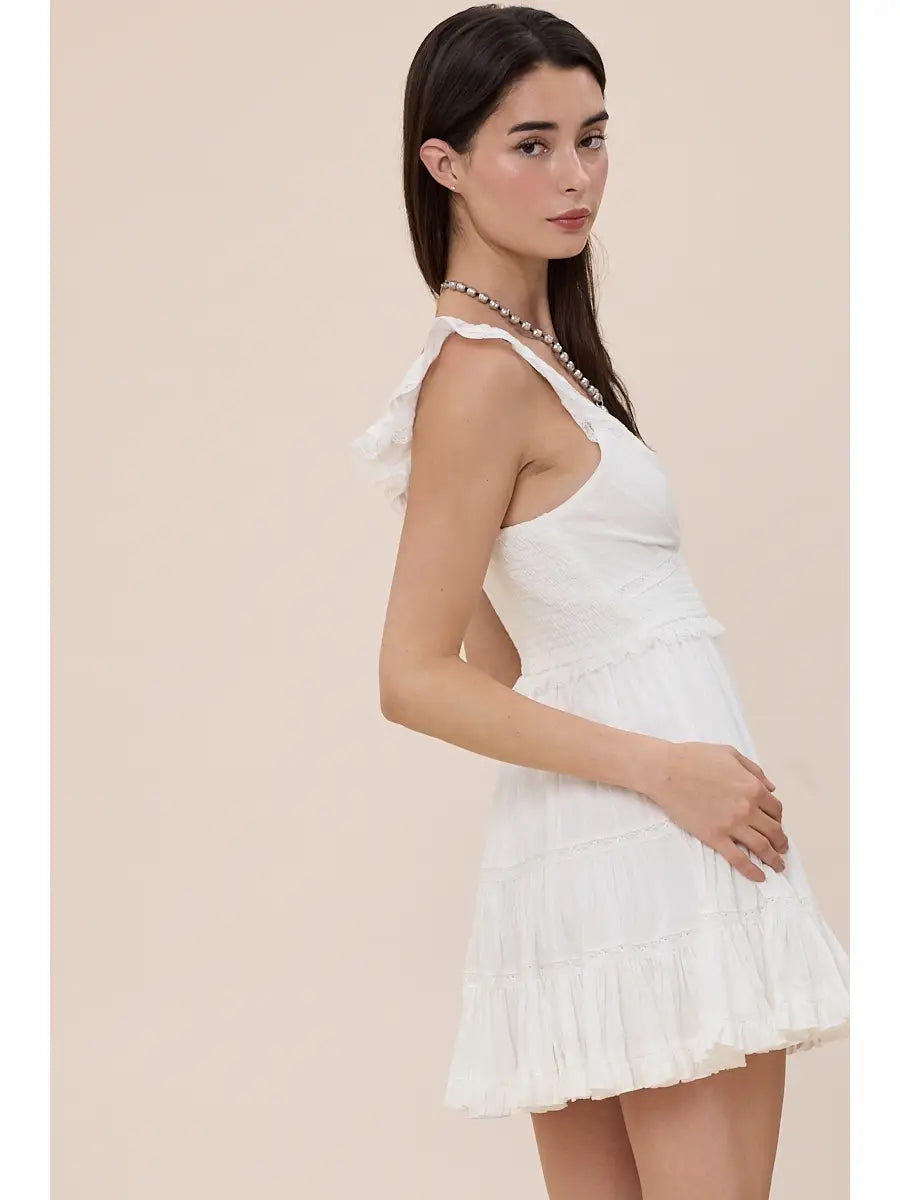 Elevate your wardrobe with this charming white lace mini dress. Delicate lace detailing creates an elegant, feminine silhouette perfect for date nights, brunch, or special occasions. The crisp white hue pairs effortlessly with your favorite accessories, while the mini length offers a modern, flattering cut. Soft and breathable fabric ensures all-day comfort. A versatile piece that transitions seamlessly from casual to dressed-up looks.