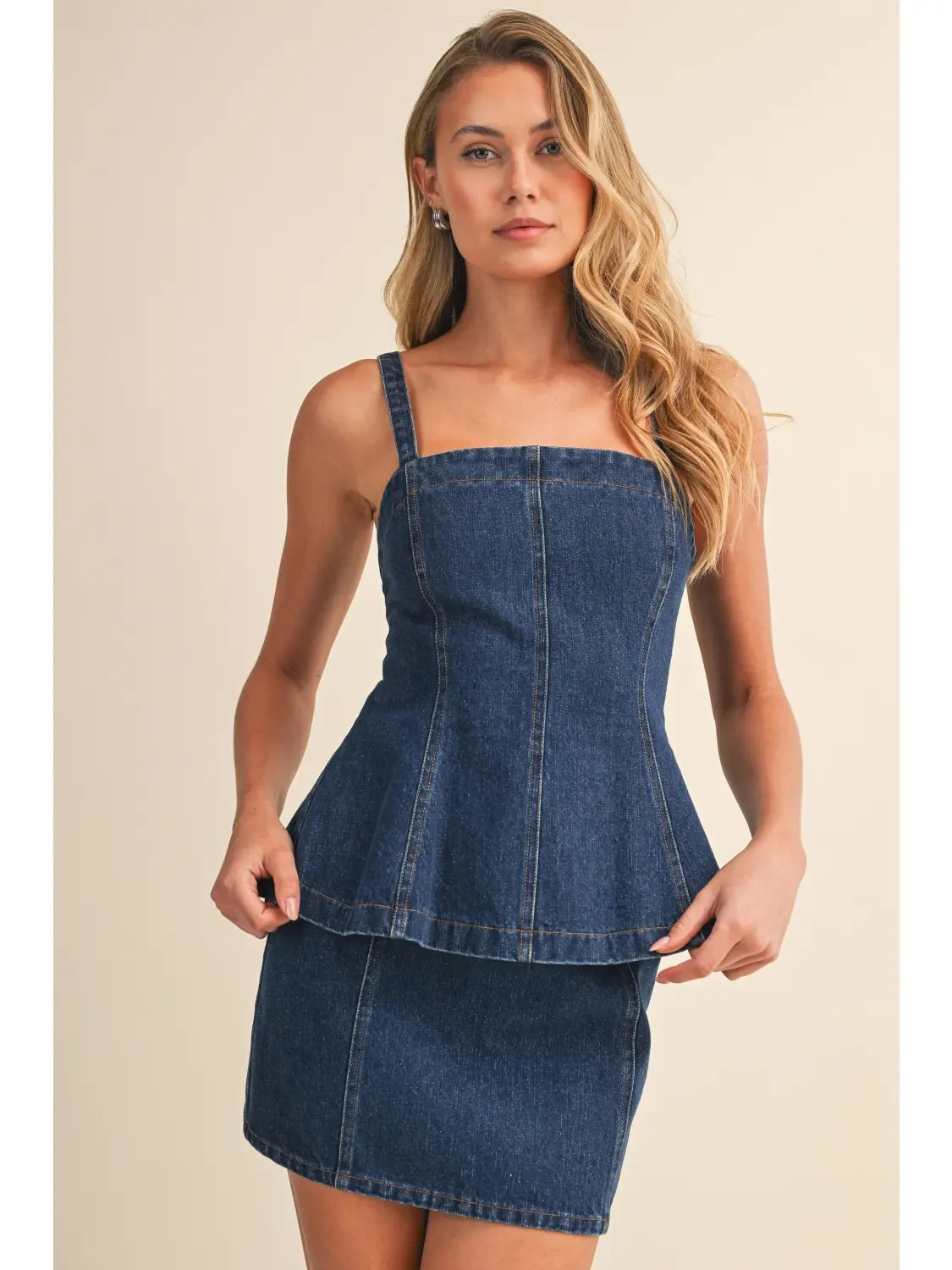 Denim Peplum Top and Skirt