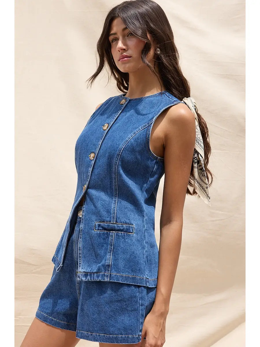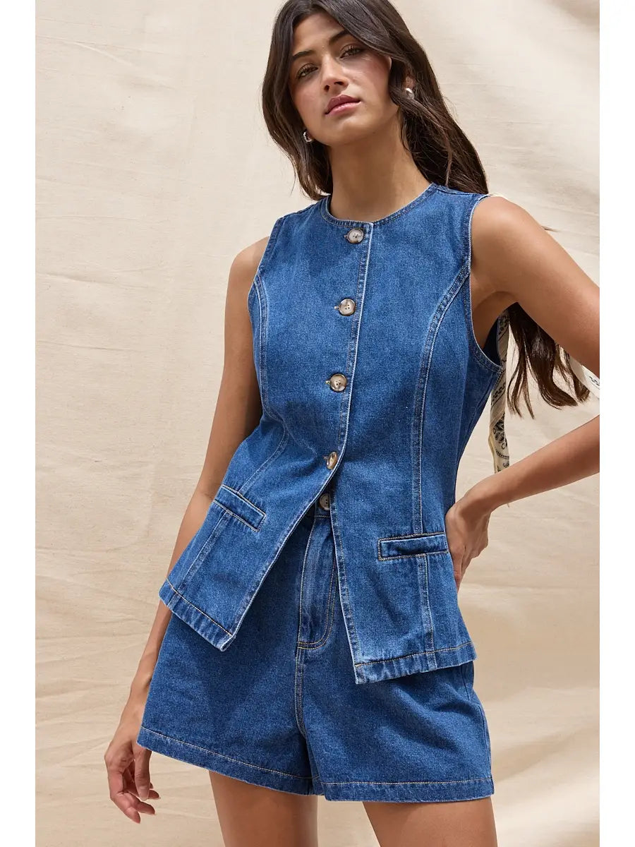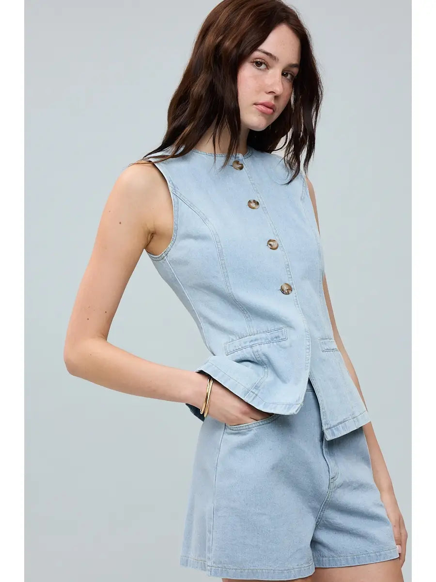 Denim Shorts & Vest Set