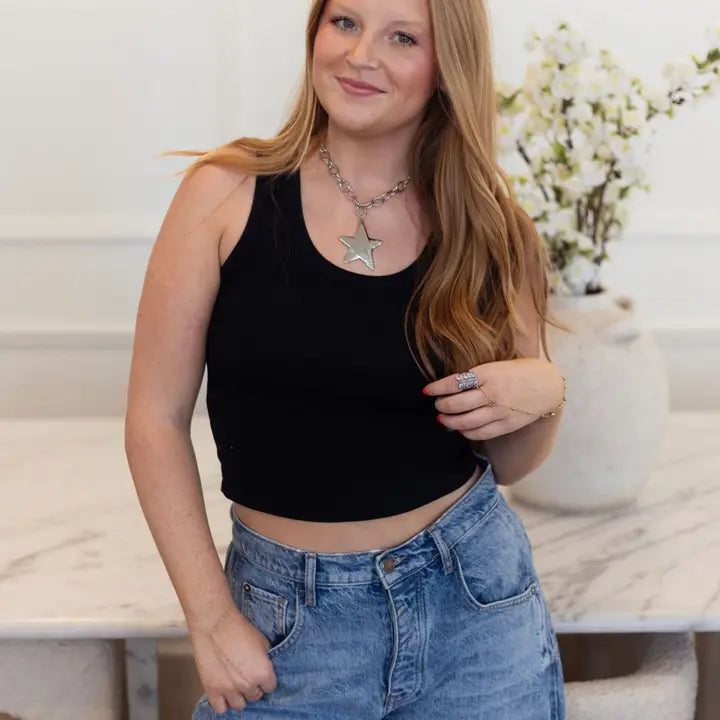 Make a bold statement with this chunky star necklace that's impossible to ignore. Perfect for adding instant personality to any outfit, this eye-catching piece layers beautifully or shines solo. Whether you're dressing up for a night out or elevating your everyday look, this celestial-inspired stunner brings that perfect mix of fun and sophistication. Wear it loud, wear it proud—your neck deserves the spotlight.