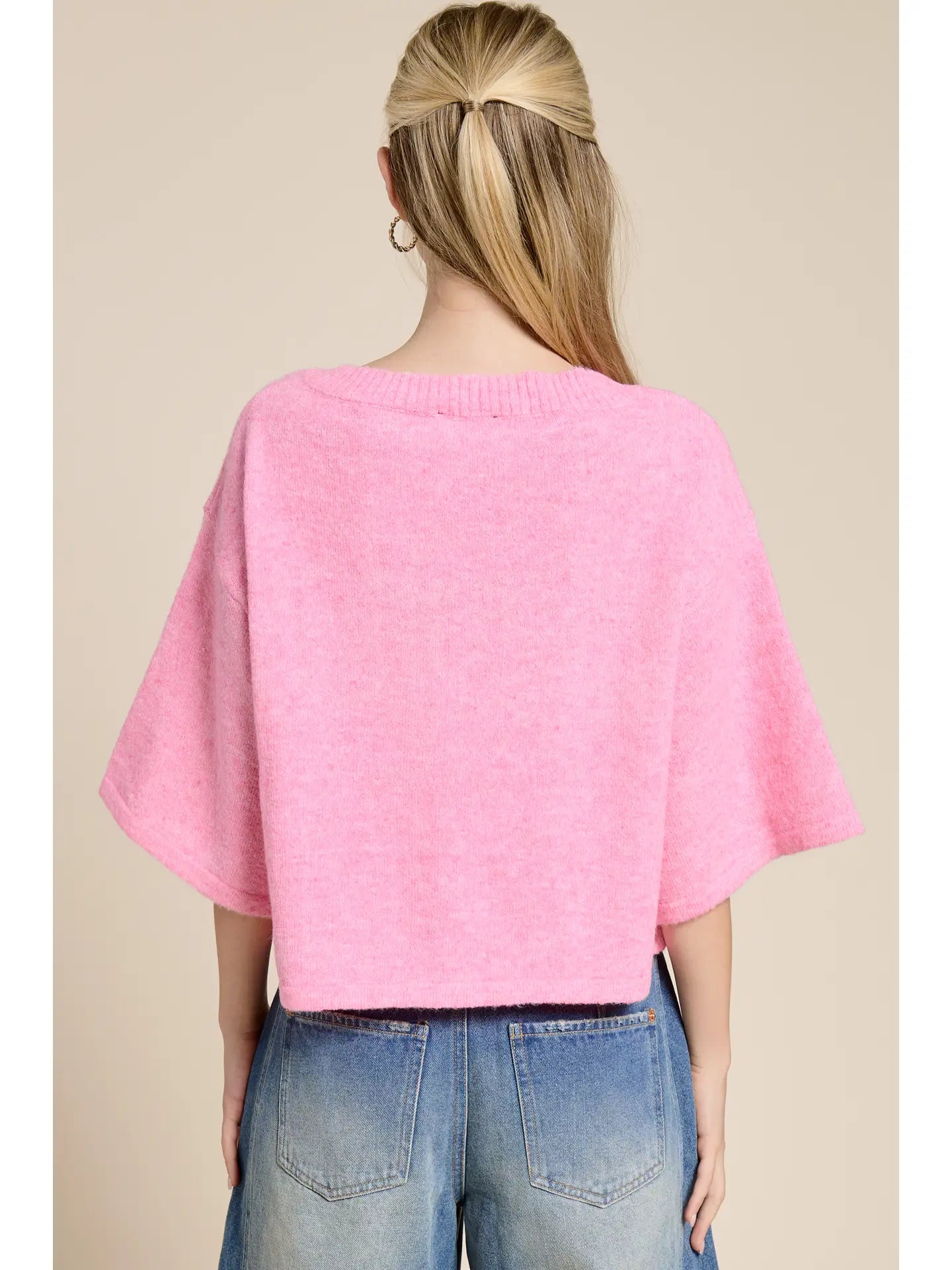 Button Front Short Sleeve Knit Cardigan