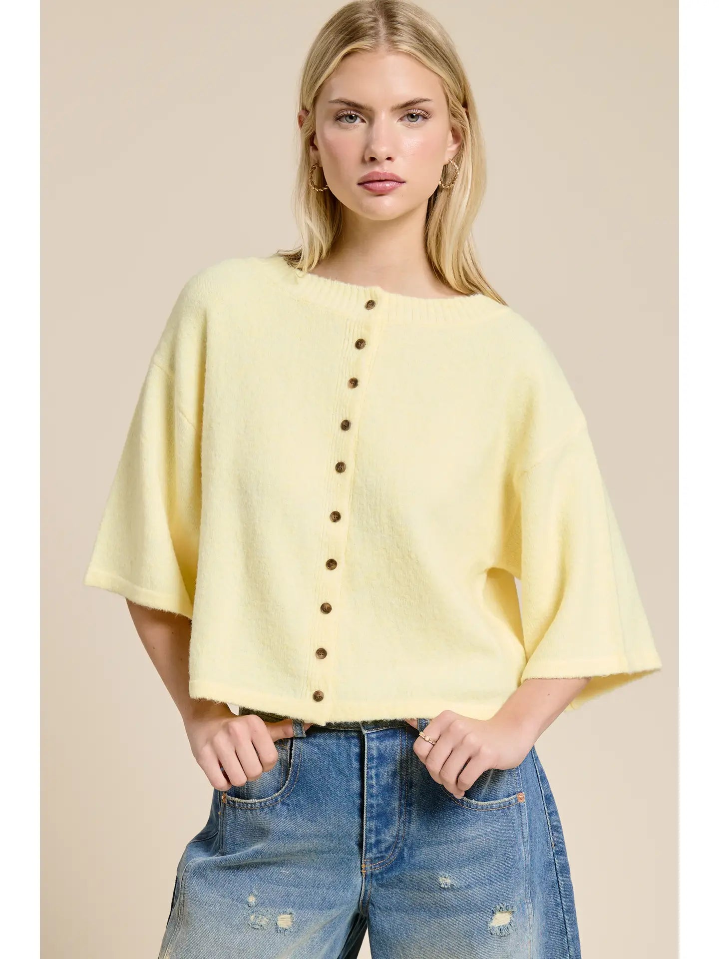 Layer up with effortless style in this button-front knit cardigan. The short sleeves keep things breezy while the soft knit fabric offers cozy comfort for any season. Perfect for throwing over your favorite tee or dress, this versatile piece transitions seamlessly from casual coffee runs to weekend hangouts. Classic button closure and a relaxed fit make it a wardrobe staple you'll reach for again and again.