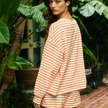 Effortlessly chic and wonderfully versatile, this oversized striped top is your new go-to for layering through every season. The relaxed fit skims your silhouette while the classic stripes add visual interest without demanding attention. Throw it over a tee, pair it with your favorite jeans, or dress it up with tailored trousers—this piece transitions seamlessly from casual coffee runs to weekend adventures. Comfort meets style in one timeless staple.