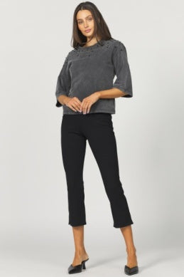 Discover effortless charm with this embellished French terry tee. Its soft, cozy fabric feels like a warm hug, while playful details add a trendy twist to your laid-back look. Perfect for days when you want to stay comfortable but still look cute and full of personality.