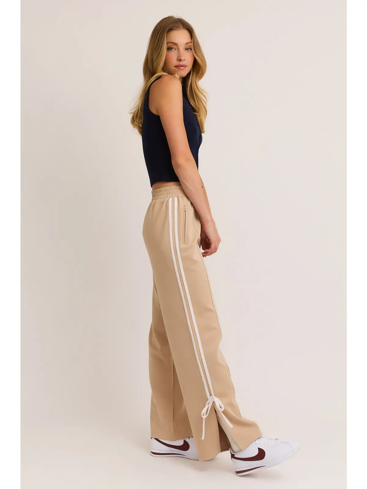 Get ready to add some cute flair to your track pants collection with our Bow Detail Track Pants! Featuring adorable bow details, these pants are sure to make a statement while keeping you comfortable during your workouts or lounging days. Upgrade your wardrobe with these playful and stylish track pants today.