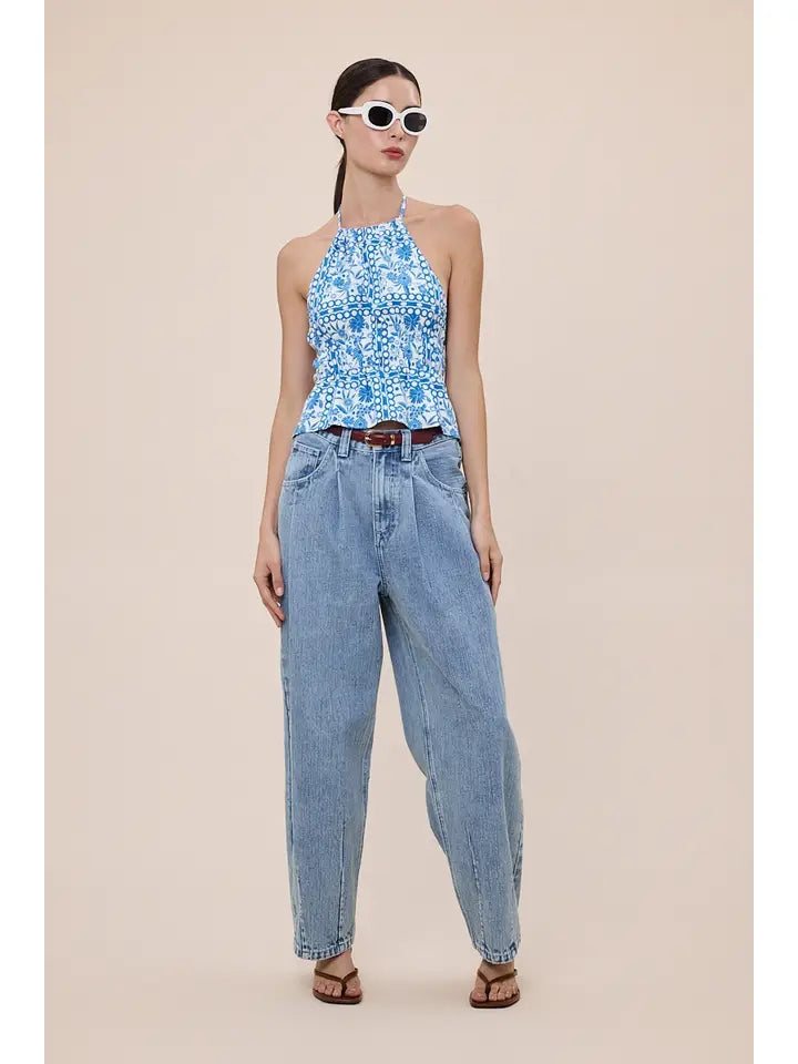 This playful Floral Halter Tie Back Top features a charming vintage floral print and a flattering halter neck design. Its backless style with a tie back adds a flirty touch, while the tiered layers create a fun, breezy silhouette perfect for sunny days and casual outings.