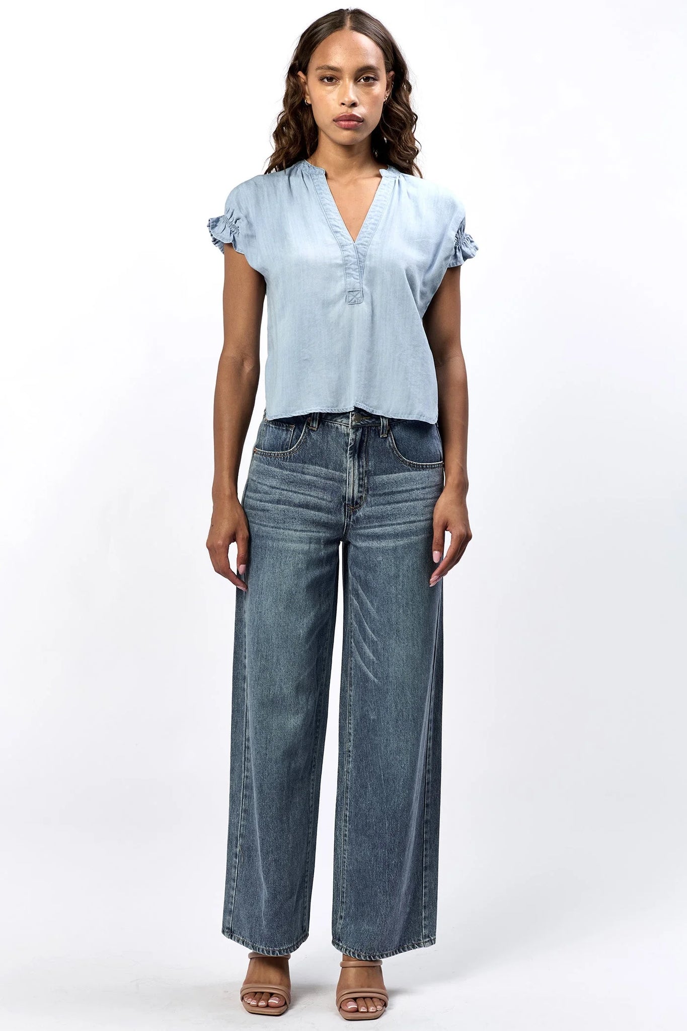 The elegance in simplicity with the Julia V-Neck short sleeve relaxed fit top, a staple in chic fashion. This top boasts a flattering neckline designed to provide ultimate comfort and style fusion. Its relaxed fit ensures a breezy, comfortable feel, making it an essential piece for any wardrobe, perfect for those seeking versatile outfits that transition seamlessly from casual to sophisticated looks.