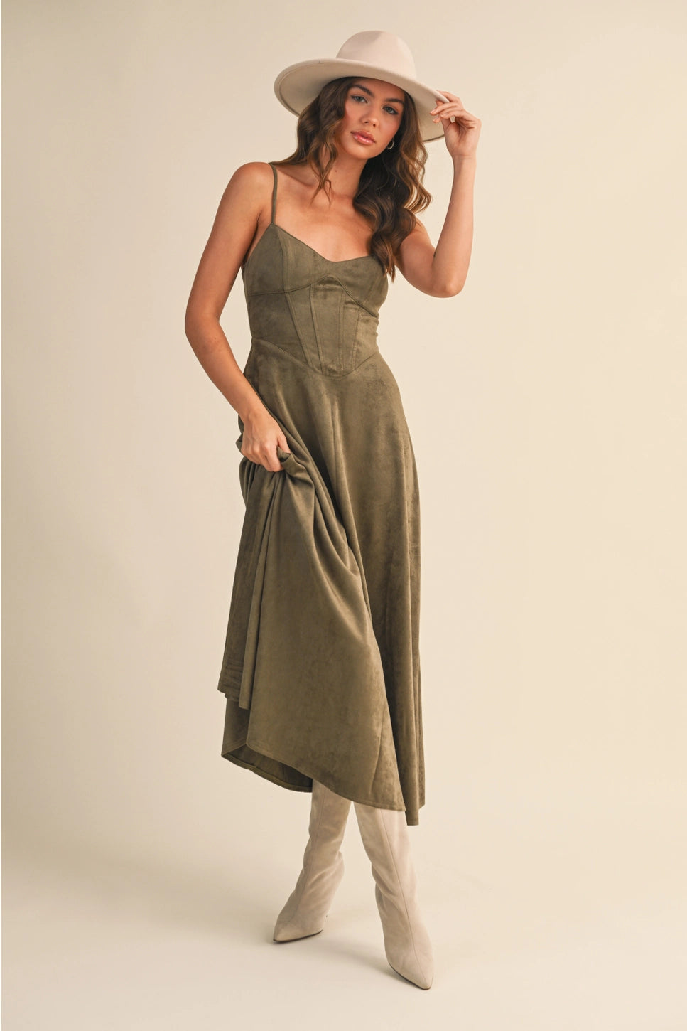 Suede Corset Midi Dress