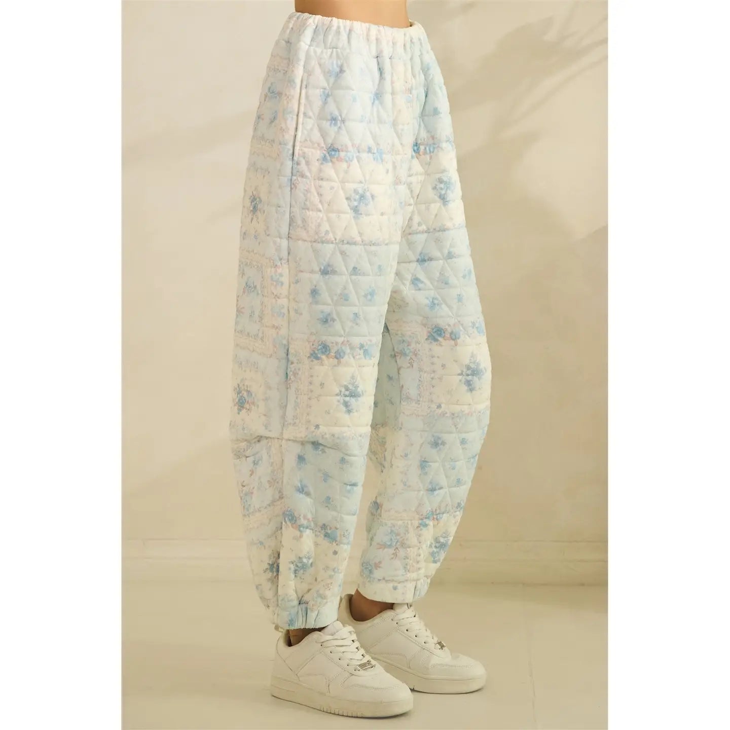 Slip into comfort with these adorable quilted lounge pants that blend style and coziness. Featuring a charming textured design in soft blue and white tones, they're perfect for lazy days at home or casual outings. The relaxed fit keeps you feeling free and easy, while the quilted detailing adds a playful touch that makes lounging feel like a treat. Cozy never looked so cute.