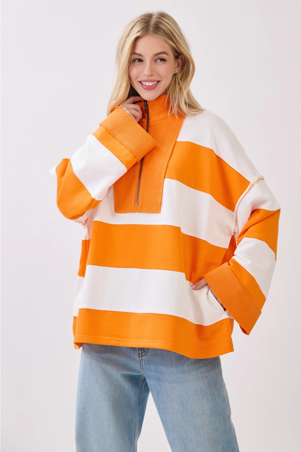 Get ready to cheer in style with our Game Day Stripe Pullover! This cozy, cute pullover features playful stripes perfect for showing off your team spirit while staying comfy. Whether you’re tailgating or watching the big game, its soft fabric and relaxed fit keep you cozy and ready for all the fun. Make every game day your favorite day with this striped essential!