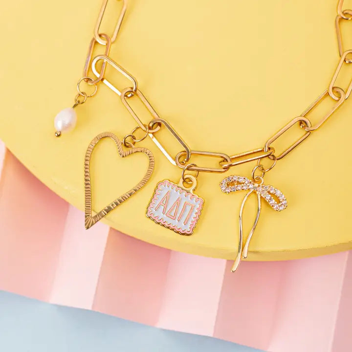 This adorable sorority charm is the perfect little touch to show off your sisterhood pride with style and fun. Whether you add it to your bracelet or necklace, it brings a playful sparkle that celebrates your bond in the cutest way possible. A charming keepsake that's sure to make you smile every time you wear it!