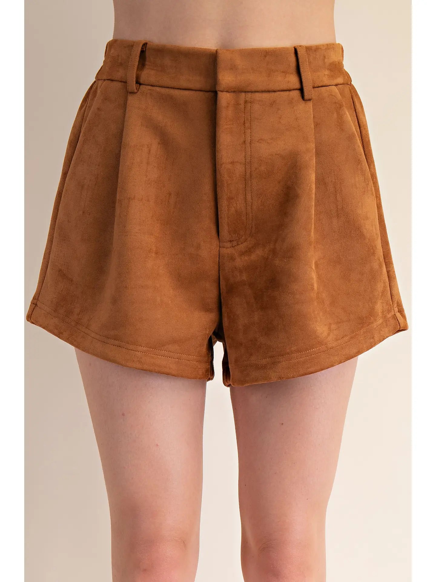 These high-waist suede shorts bring playful charm to your wardrobe with their soft, luxurious texture and flattering fit. Perfect for sunny days or casual nights out, they hug your waist for a cute silhouette while adding a touch of stylish sophistication to any outfit. Easy to dress up or down, these shorts are a fun, versatile must-have for a fresh, flirty look.