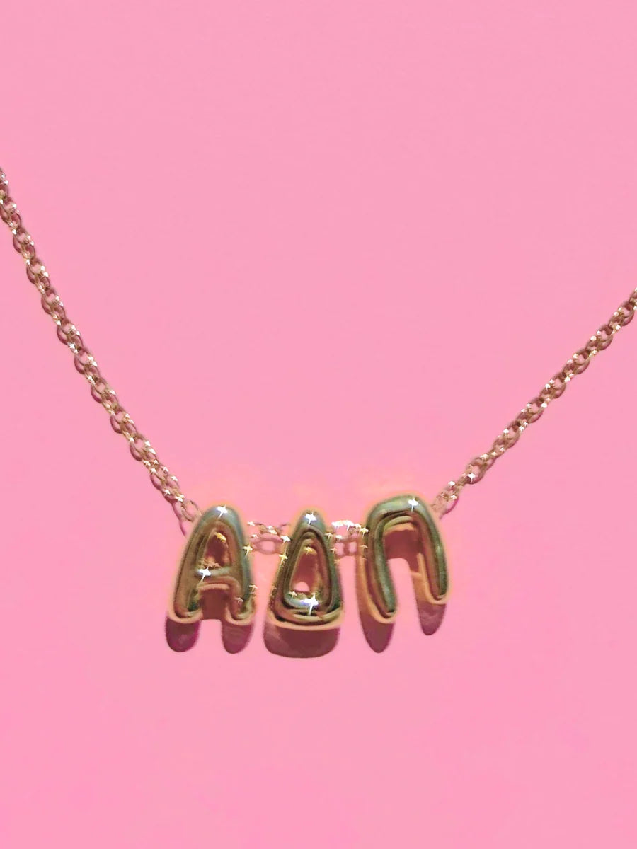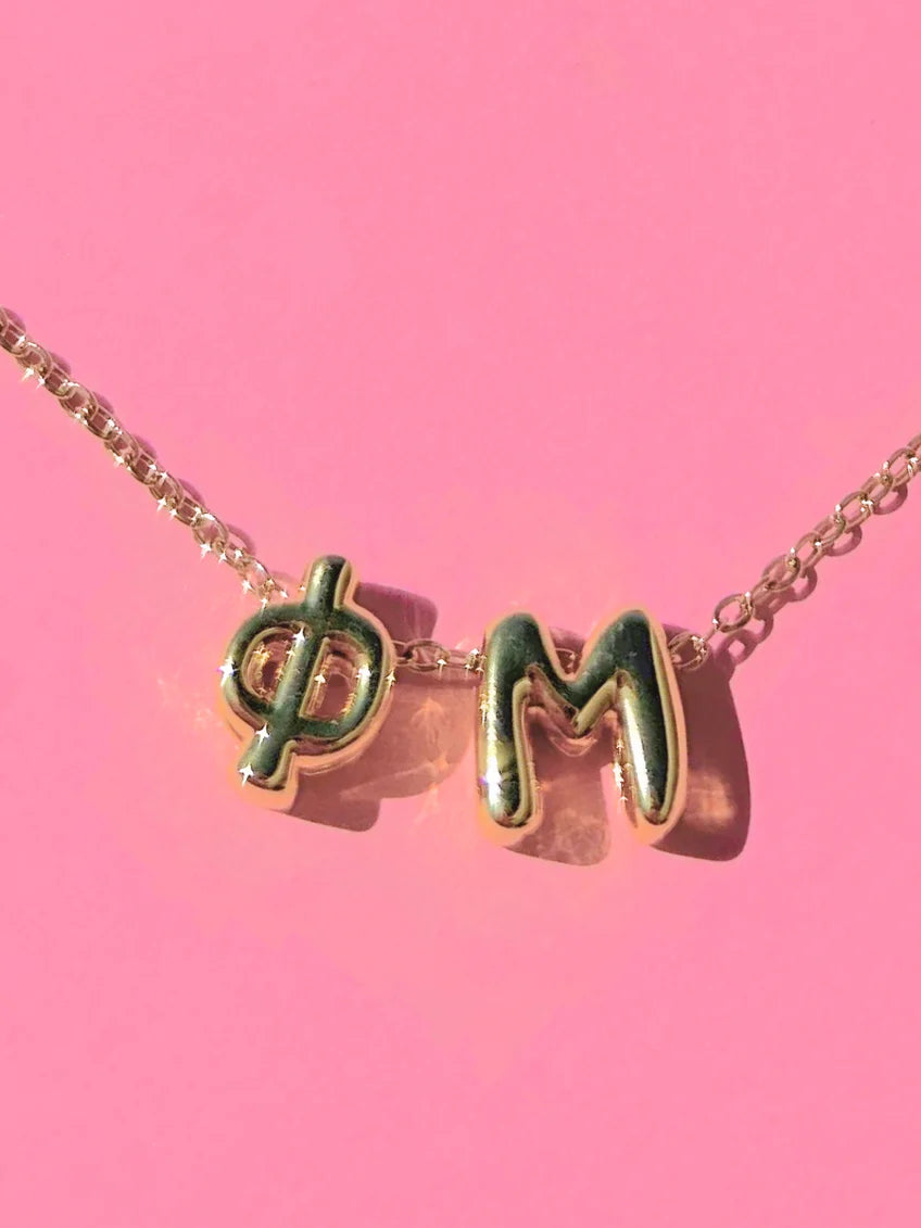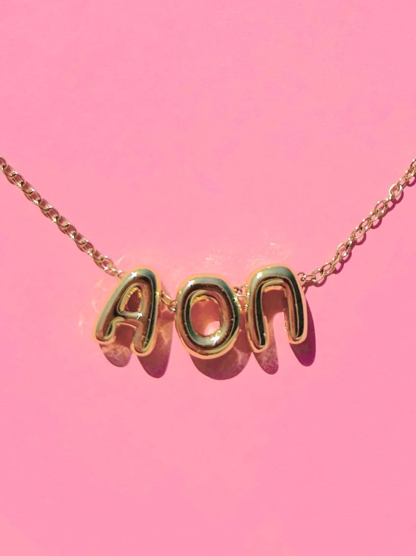 This fun popular necklace is water resistant, gold bubble shaped sorority letters. 16-18" adjustable gold chain making it easy to wear
