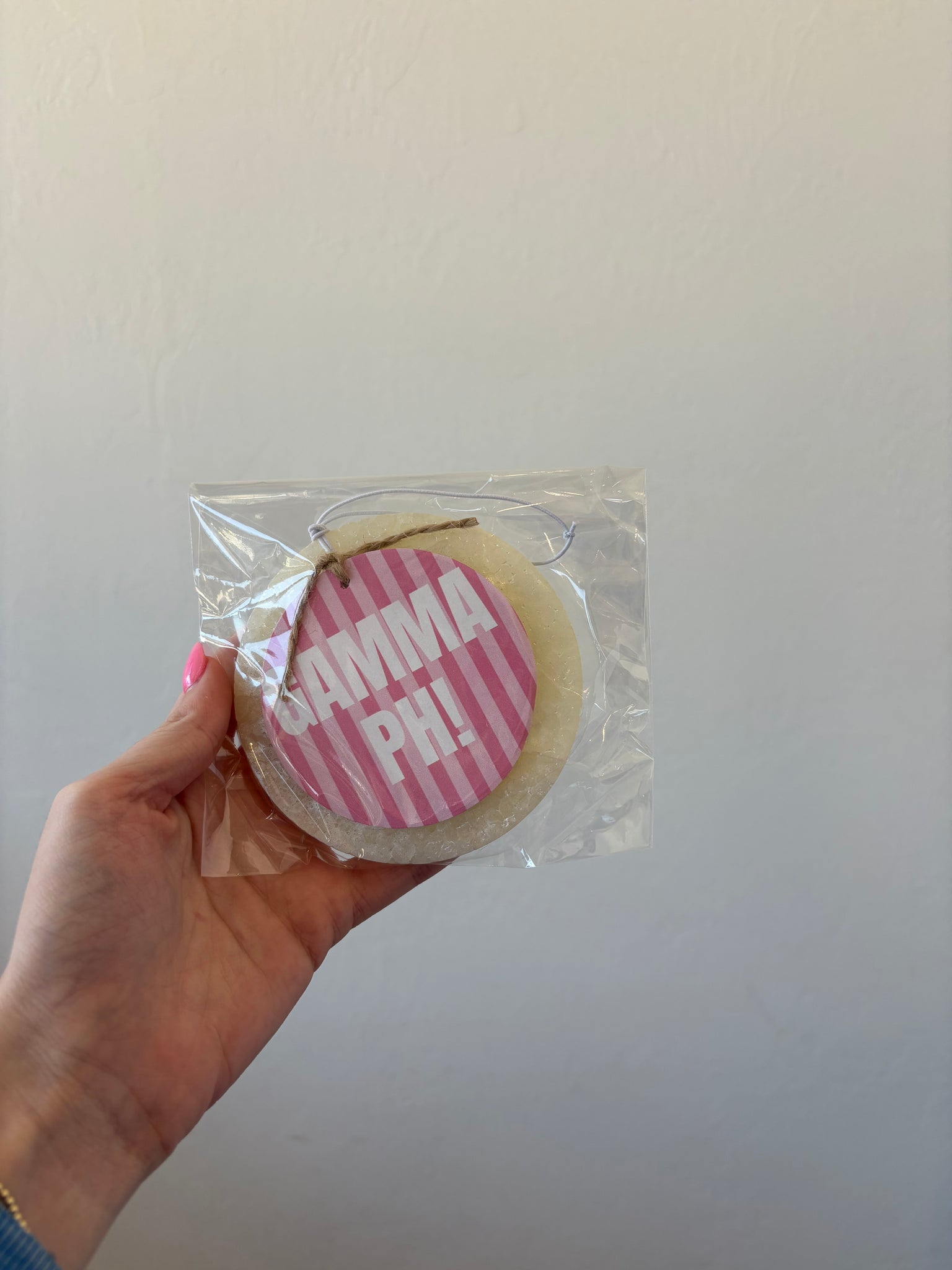 Add a burst of volcanic vibes to your ride with our Sorority Car Freshie. This playful scent awakens your senses with a fresh, invigorating aroma that keeps your car feeling lively and fun. Perfectly sized to hang anywhere, it’s the ultimate way to keep your wheels smelling like a mini adventure every day.