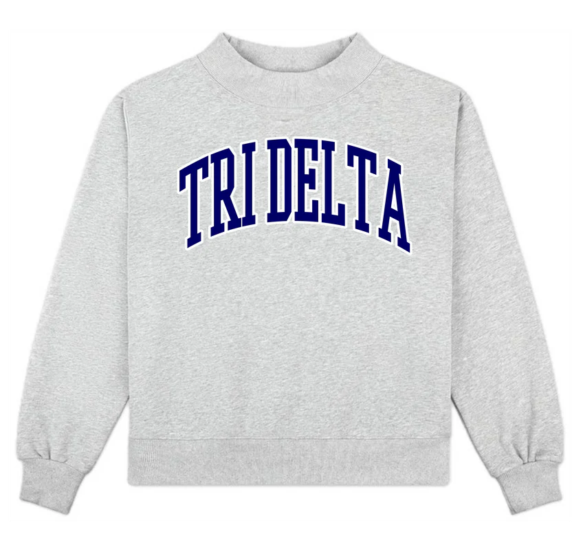 Your new go-to just dropped. The Campus Mock Neck is that sweatshirt—relaxed, collegiate, and cool without trying too hard. With its bold embroidered sorority nickname and structured neckline, this crew is made for walking to class, lounging at the house, or hyping your sisters before chapter. It’s giving oversized, lived-in, and totally iconic energy.