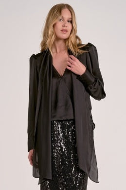 This playful long-sleeve top features a flattering V-neck and a charming scarf tie at the neck, adding a touch of whimsy to your outfit. Its cozy sleeves and stylish detail make it perfect for mixing comfort with a dash of fun flair.